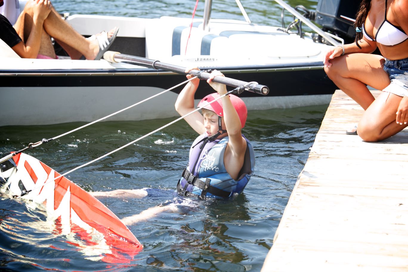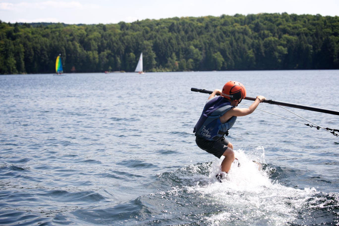 Never wakeboarded before? No problem! Hop on the boom and the Camp Timberlane instructors will get you going.