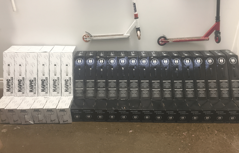We have a variety of Havoc scooter wheels (110mm and 120mm), Havoc Pro Scooter Pegs and Havoc Scooter Grips to choose from. Guess you can say we love Havoc!