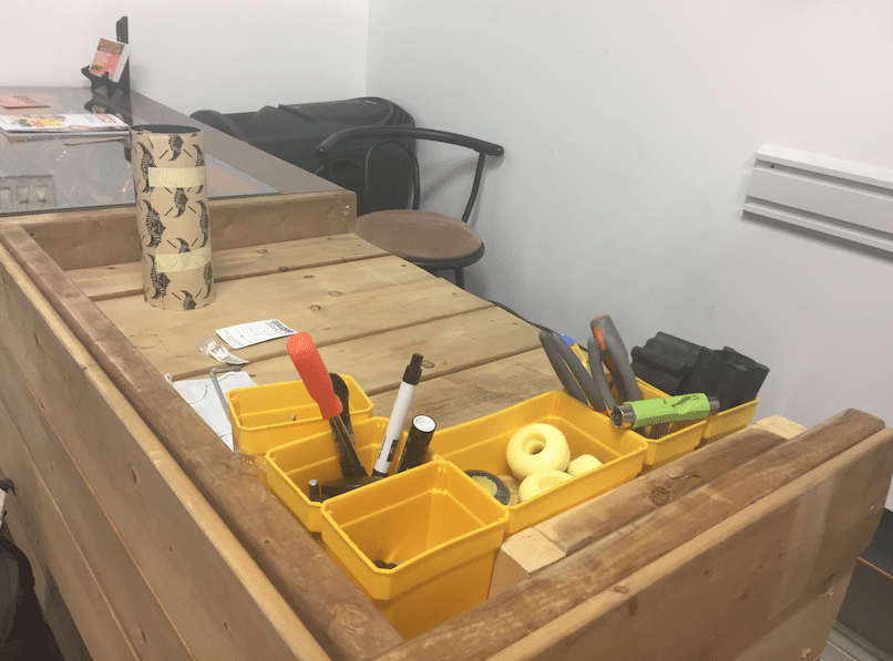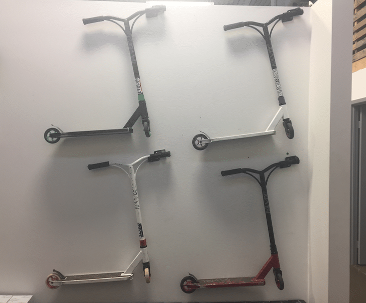 Well, we’ve got some even bigger news. Last week we opened our brand new scooter shop at the front of our head office in Toronto! This is something we’ve been dreaming about doing for a long time and we’re thrilled that it’s come to life. We love having friends of Evolve come by as well as new friends pop in to check out what we’ve got and chat with one of our staff about our many summer programs for scooter, skateboarding, bmx and surf.