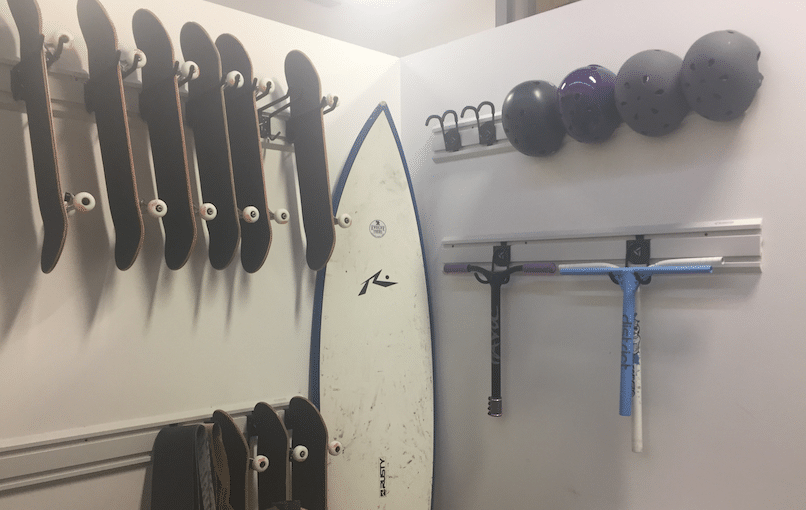 Helmets, bars, and Evolve complete skateboards too! We also have our surfboard on display which always gets us thinking about Evolve Surf Camp in Costa Rica.