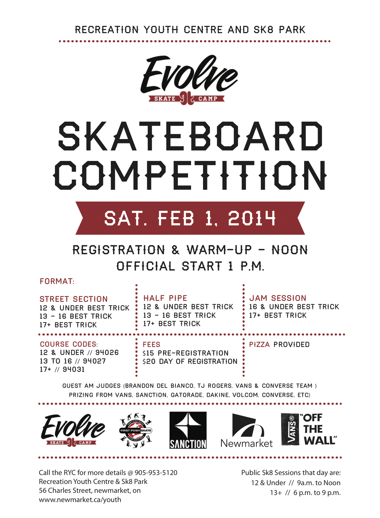 On Saturday February 1st we will be hosting are annual winter skate comp. There are 3 different division and 3 categories. Pre registration is $15.00 and at the event will be $20.00. We have some great sponsors onboard which mean great prizing. We hope you can make it and take part in this cool event.