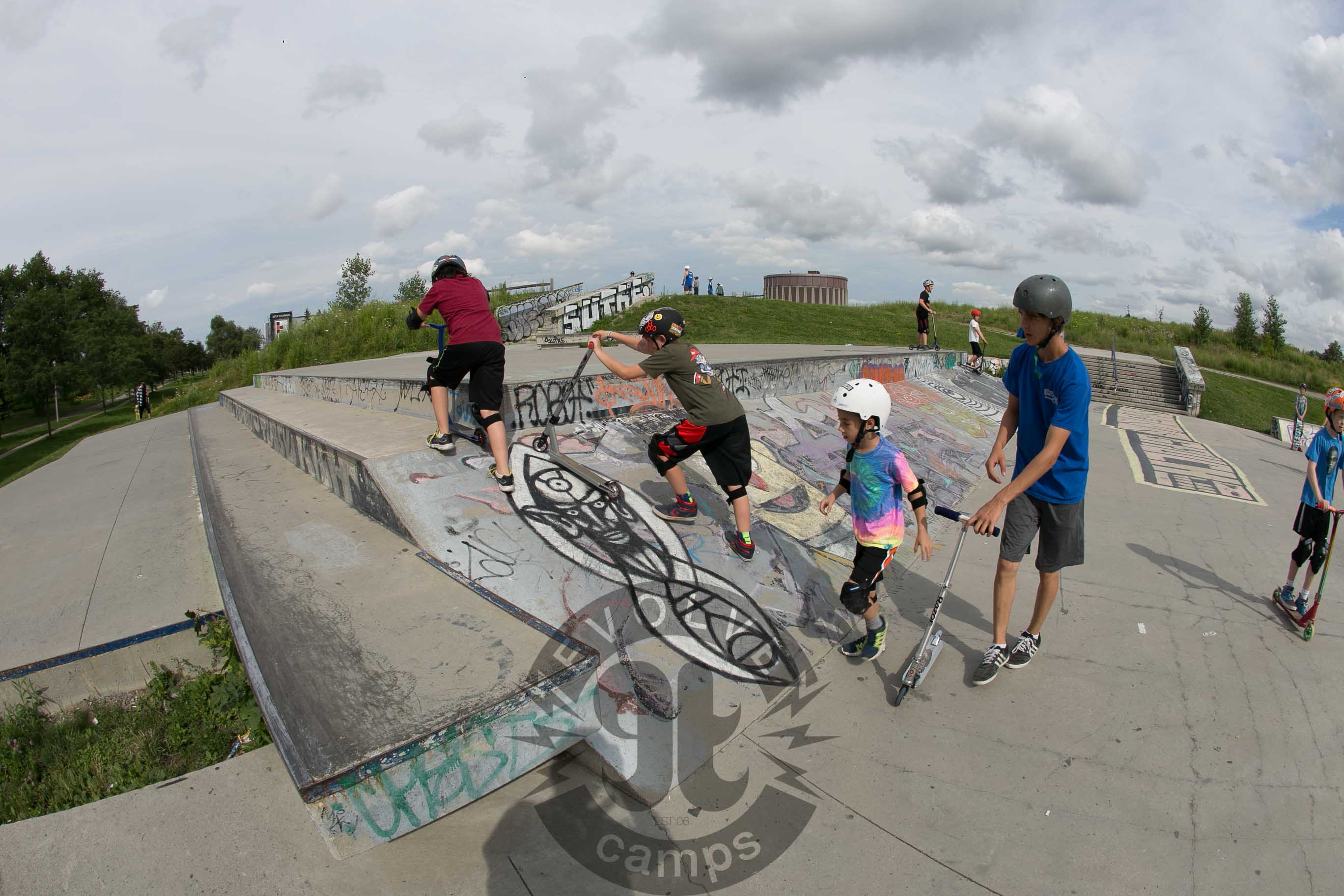 Week 4 of the Toronto Skateboarding and Scooter Camps has been running amazing so far! Lots of progression, lots of fun and the rain has been holding off. Here are some photos from Todays session at Ashbridges Bay Skatepark.